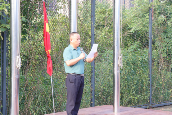 学院总支书记谭顺来、副书记谭小红,辅导员邓志刚、曾亚斌、何忠华率领300余名学生参加,升旗仪式由邓志刚主持。谭顺来以《忠诚担当积极向上做有为青年》为题,代表学院党总支做国旗下讲话,要求大家对党忠诚,做一个品德高尚的人;勉励大家立鸿鹄志,做一个勇于担当的人;叮嘱大家坚持学习,做一个有为向上的人;希望大家学会自省,做一个完美高洁的人。